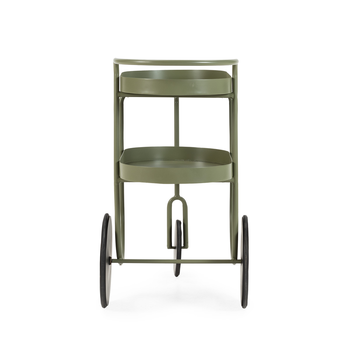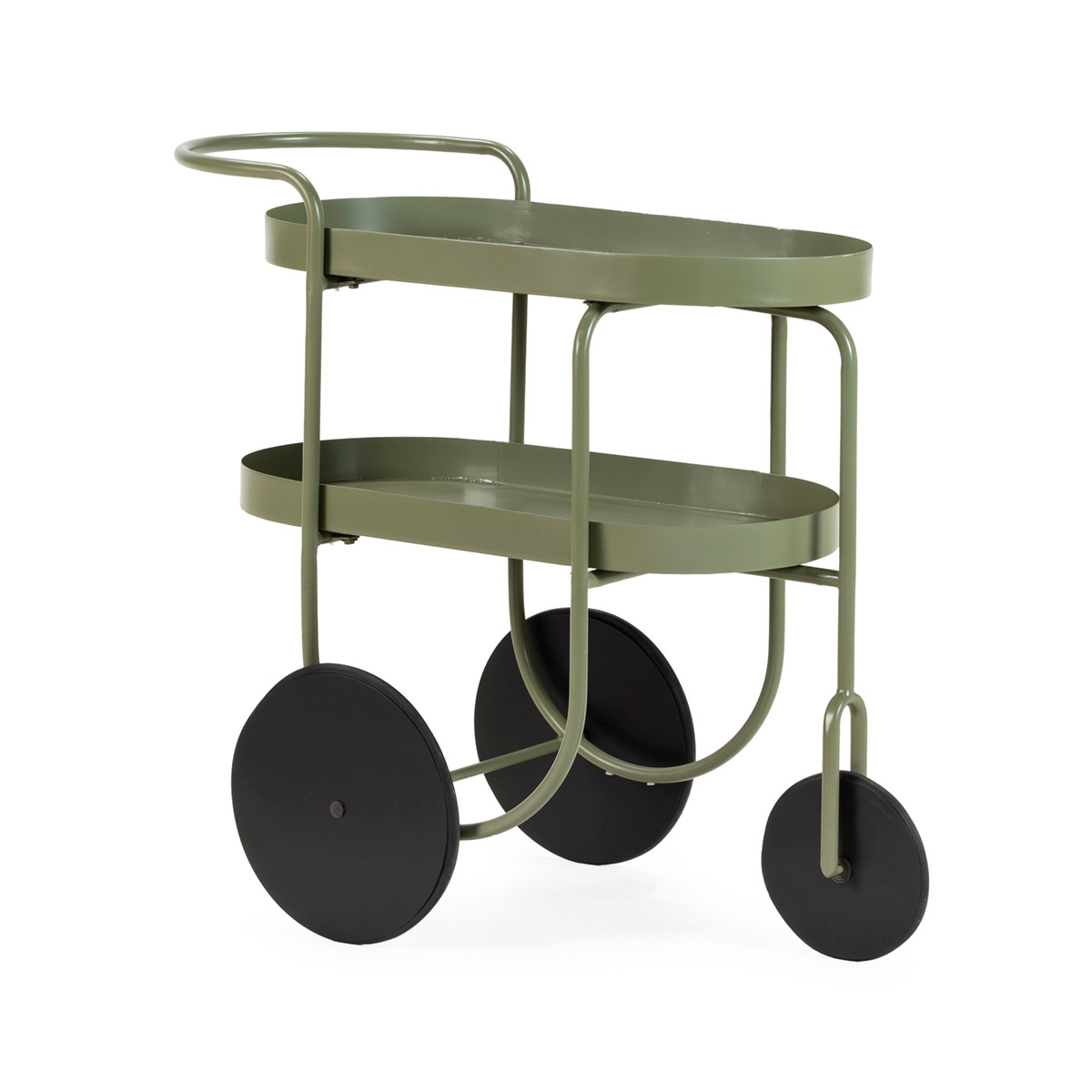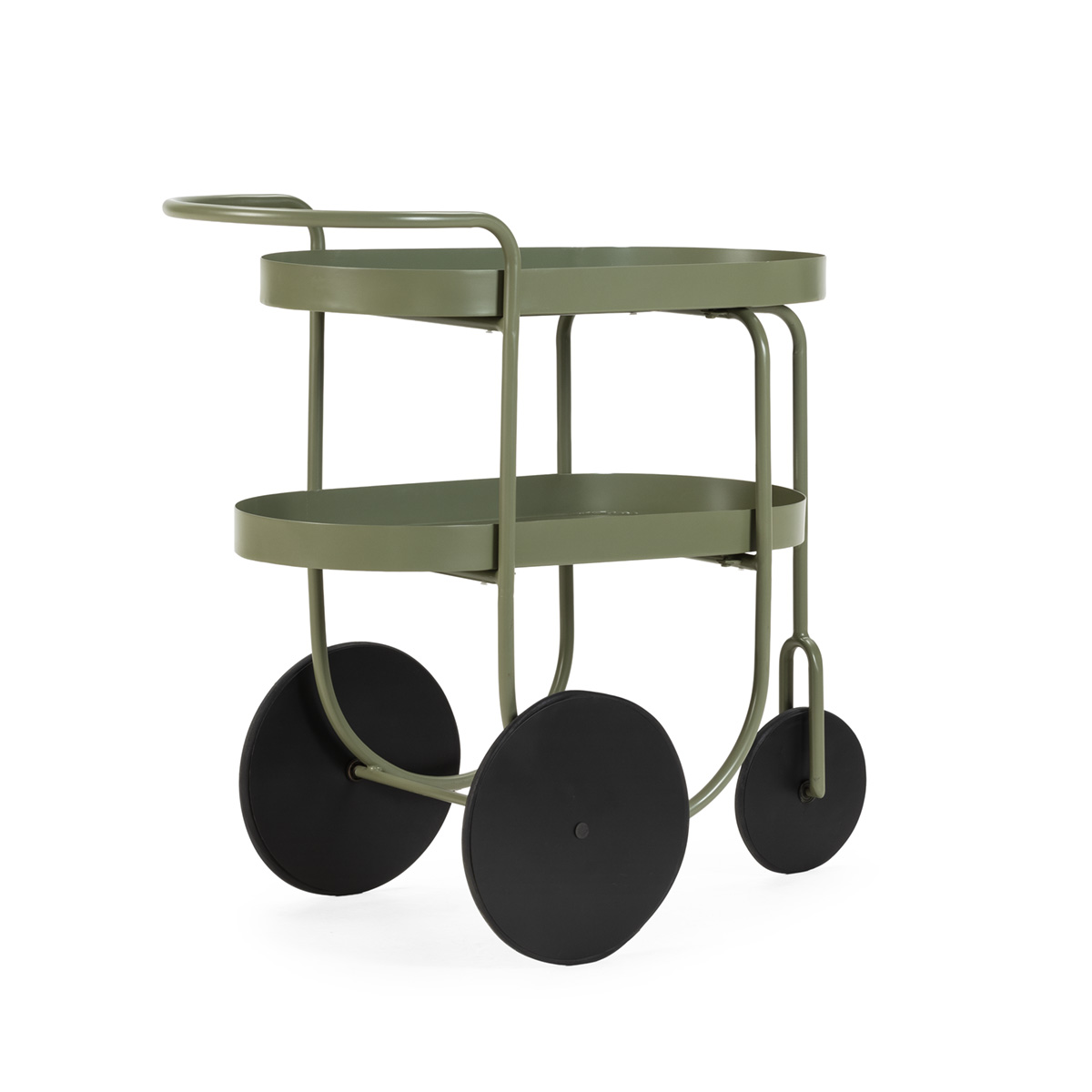 La camarera de metal verde con ruedas negras es una pieza versátil que aúna diseño y funcionalidad. Fabricada en metal de su estructura ligera y moderna destaca por su acabado en tono verde oliva, aportando una nota elegante y actual a cualquier estancia.