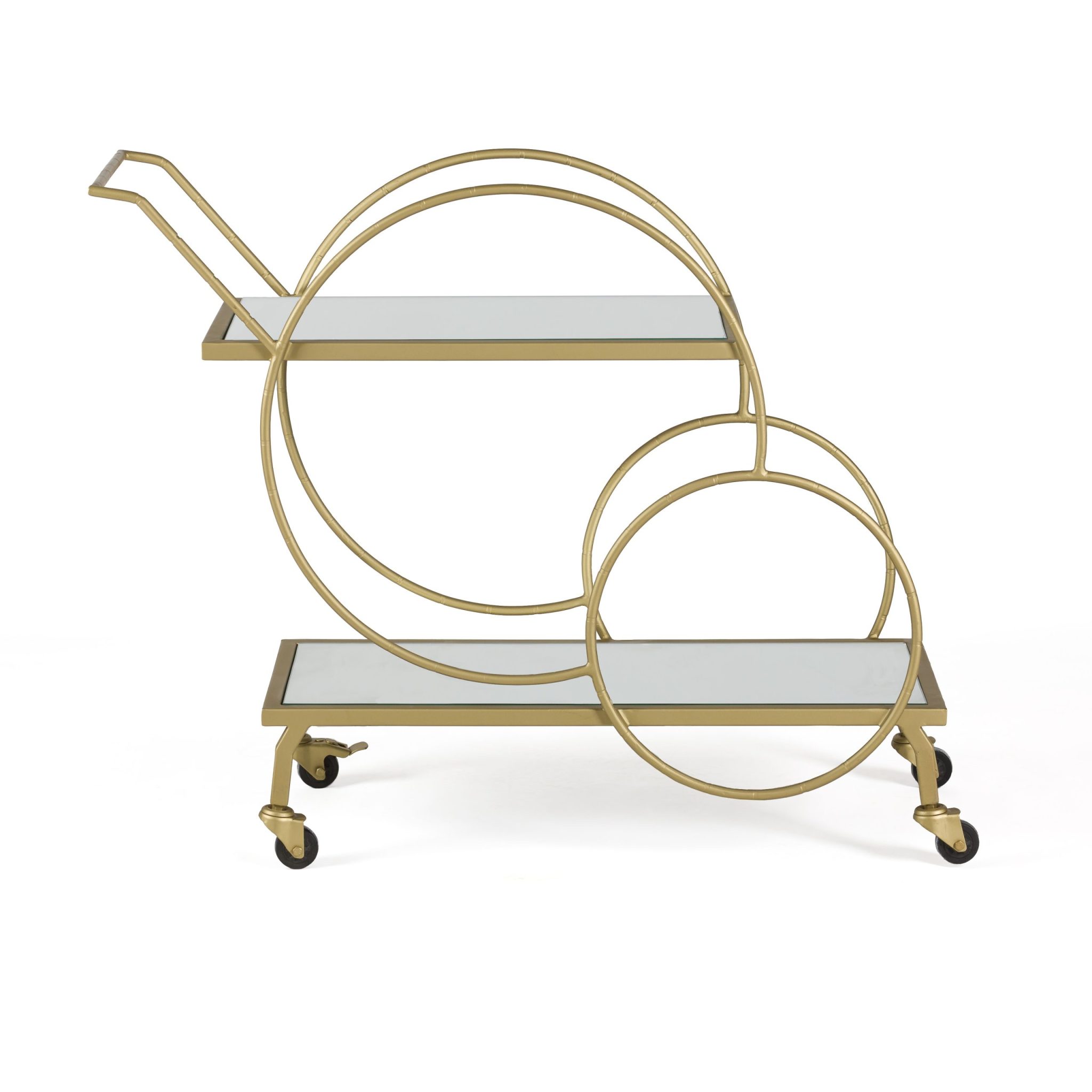 La mesa camarera 93x35x76 espejo-metal dorado ofrece una pieza exclusiva que transforma tu espacio. Su estructura de metal dorado y encimera de espejo proporcionan un diseño elegante y moderno que se adapta a cualquier ambiente. Ideal como camarera para el comedor o para un mueble auxiliar camarera que aporte un toque de estilo. Este carrito camarera es perfecto para quienes buscan una opción con encanto para embellecer su hogar.