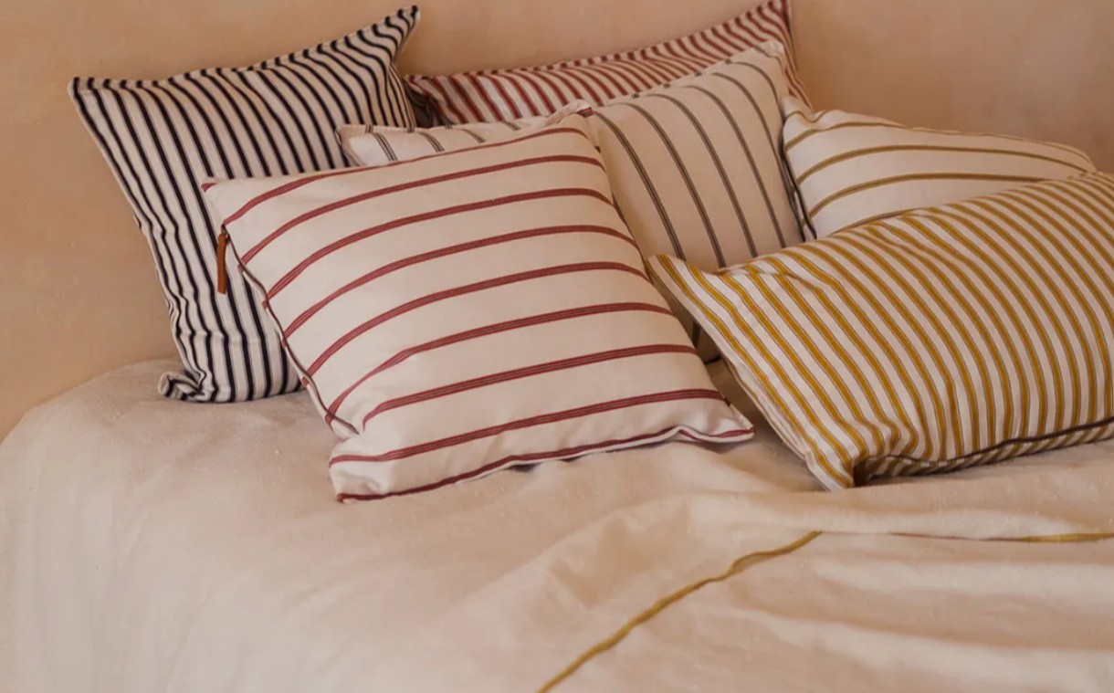 Revitaliza tu sofá, cama o rincón favorito con este cojín decorativo de rayas en formato 60×40 cm. Su diseño en rayas finas de algodón sobre fondo crudo con textura espiga aporta un aire natural, elegante y veraniego a cualquier estancia. Perfecto para quienes buscan cojines modernos para sofácojines salón o cojines para decorar la cama con un toque fresco y actual 🌿