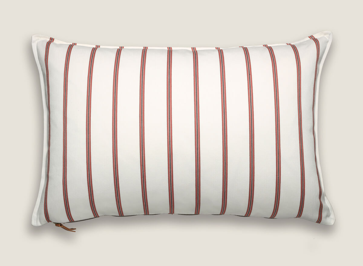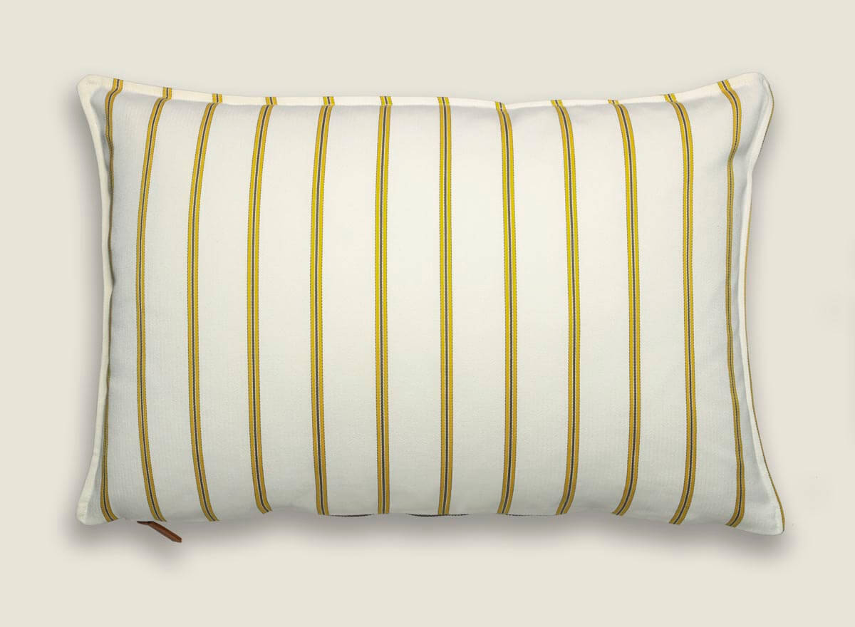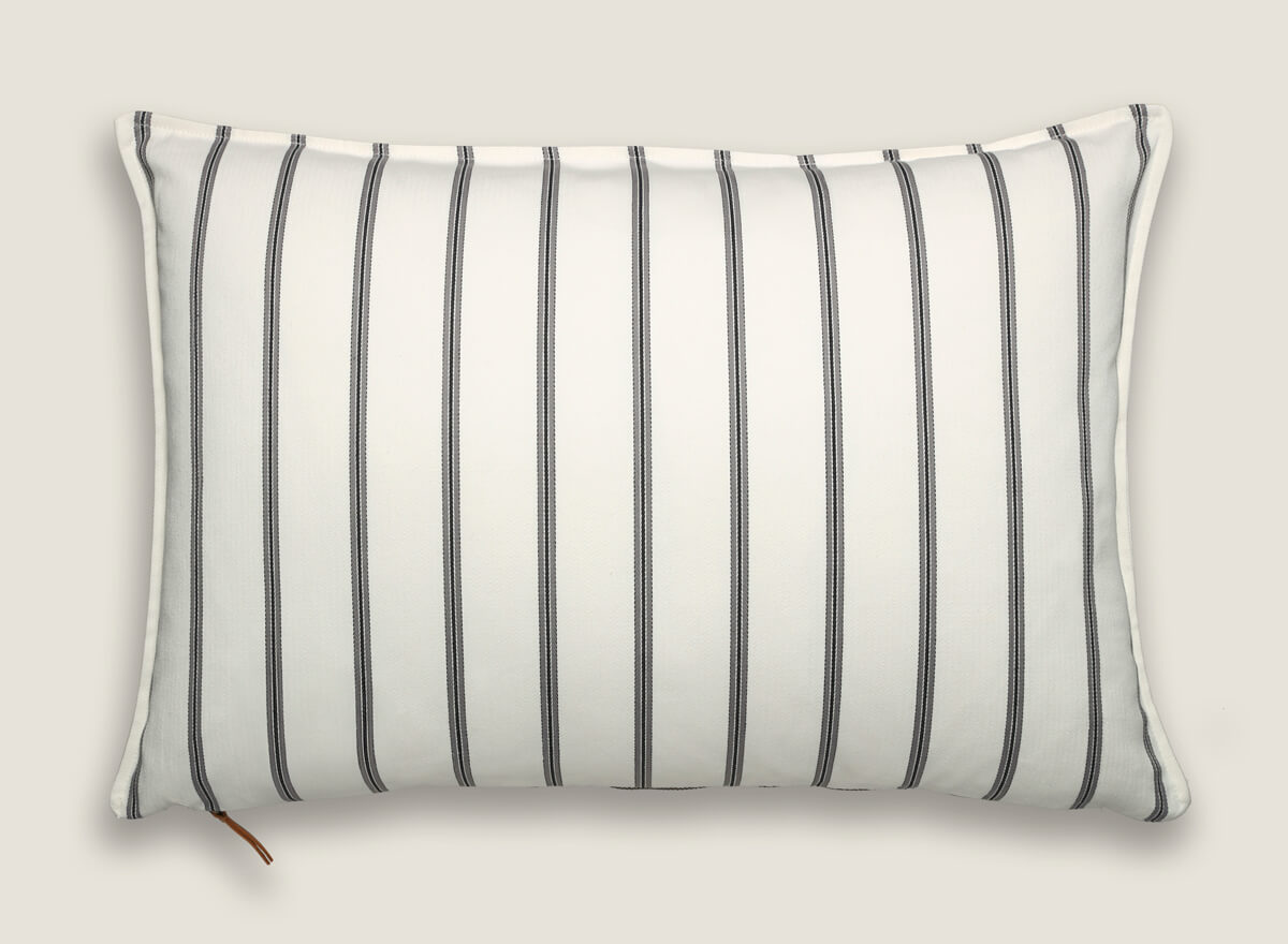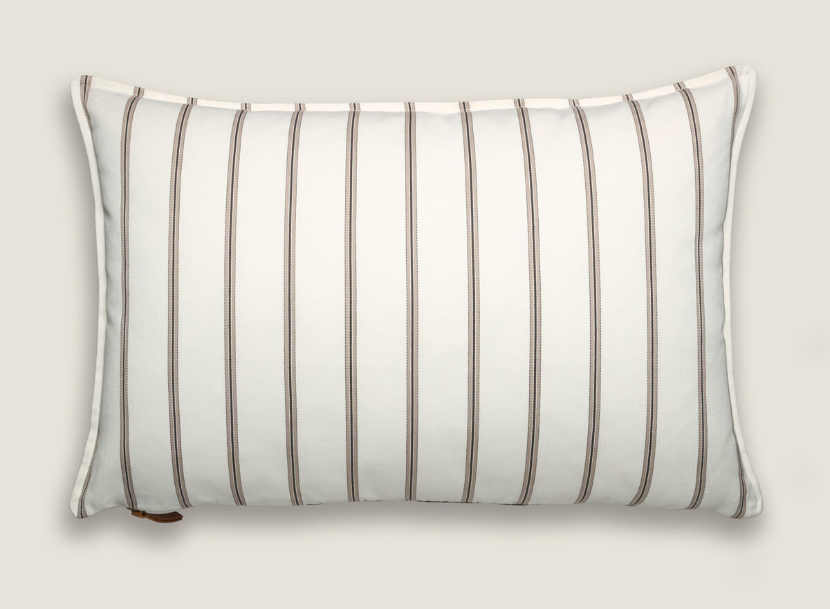 Cojín decorativo rectangular de 60×40 cm con rayas finas en tonos frescos sobre tejido de algodón crudo con espiga. Ideal como cojín para camacojín de sofá o para crear ambientes relajados en tu hogar. Incluye relleno de microfibra premium y se entrega en bolsa de tela reutilizable. Fabricación artesanal bajo pedido y envio gratis incluido. ¡Combina elegancia, frescura y confort en un solo cojín! 🌿🛋️