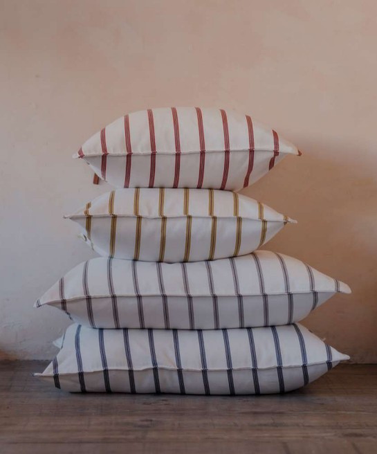 Disponibles en formato: 43×43 cm, puedes combinarlos para añadir dinamismo visual a tus espacios. Además, el acabado con pestaña decorativa y su presentación en una bolsa de tela reutilizable hacen de estos cojines de rayas una opción ideal también como regalo.
