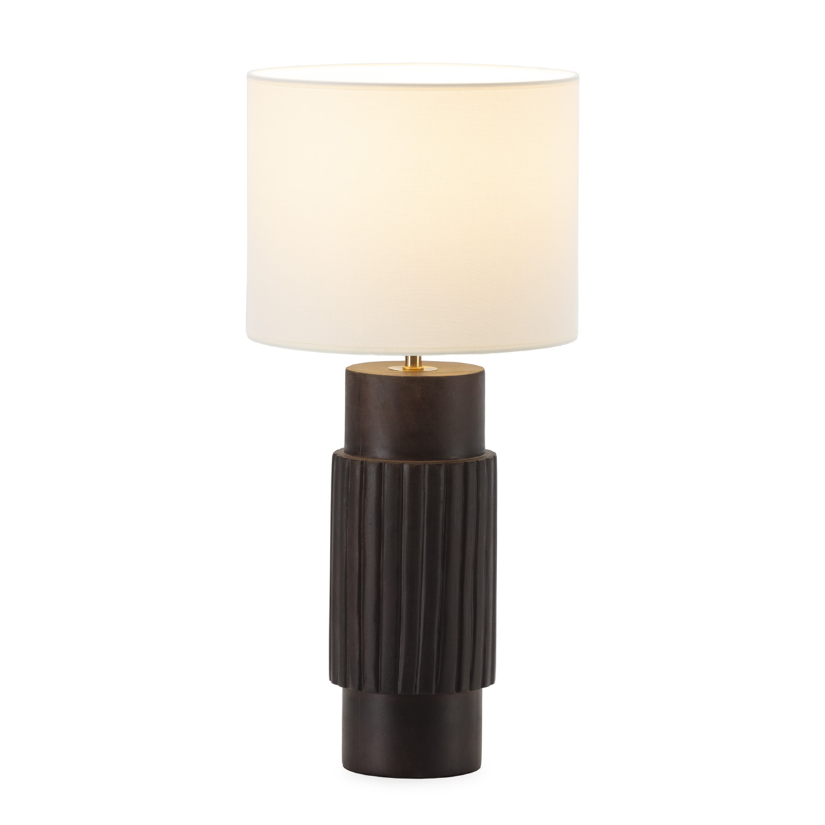 Esta lámpara de sobremesa combina la calidez de la madera de nogal con la elegancia del metal dorado, perfecta para ambientes modernos y minimalistas. Ideal para una mesita de noche o el mueble consola del recibidor.
