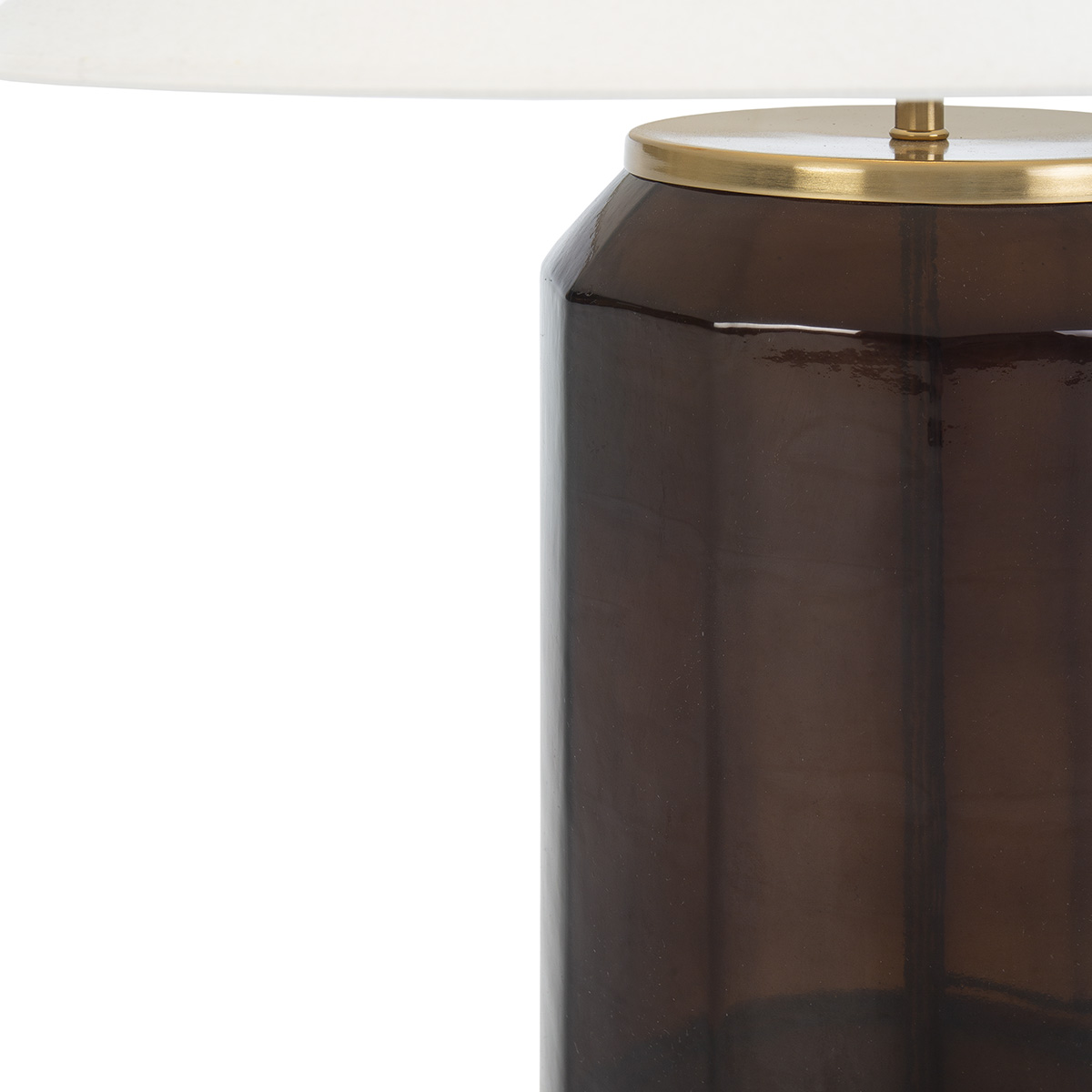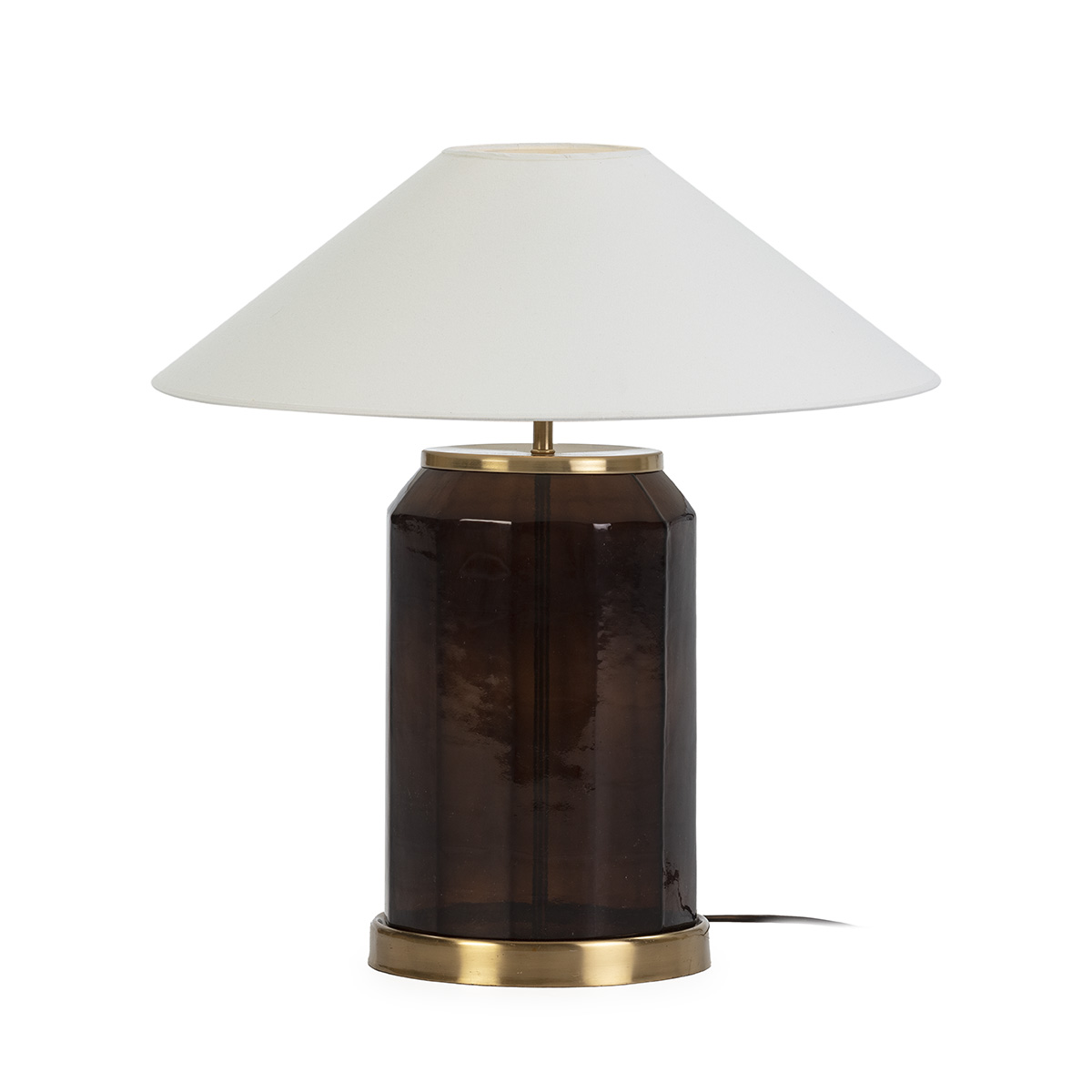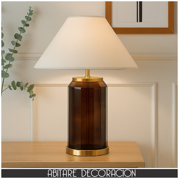 Esta lámpara de sobremesa de 20x20x45 cm es una pieza elegante y moderna que combina materiales de alta calidad como el cristal marrón y el metal dorado brillante. Perfecta para colocar en una mesita auxiliar junto a una butaca o en la entrada de la casa, esta lámpara aporta buen gusto a cualquier espacio. Su diseño la convierte en una opción ideal para quienes buscan lámparas de mesa con estilo. Ya sea en el recibidor, salón, dormitorio, esta lámpara es una opción versátil y elegante que destaca por su diseño elegante y buen gusto.