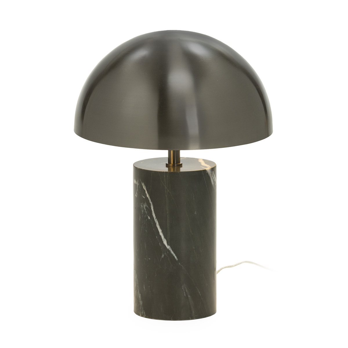 Esta lámpara de sobremesa combina dos elementos exclusivos: una base cilíndrica de mármol negro natural con vetas y una pantalla metálica en acabado latón plomo. El contraste entre ambos materiales crea una pieza moderna y sofisticada, perfecta para interiores actuales, espacios tipo boutique hotel o ambientes minimalistas con un toque de lujo. Con 25×10×40 cm, es un diseño compacto pero con gran presencia visual.