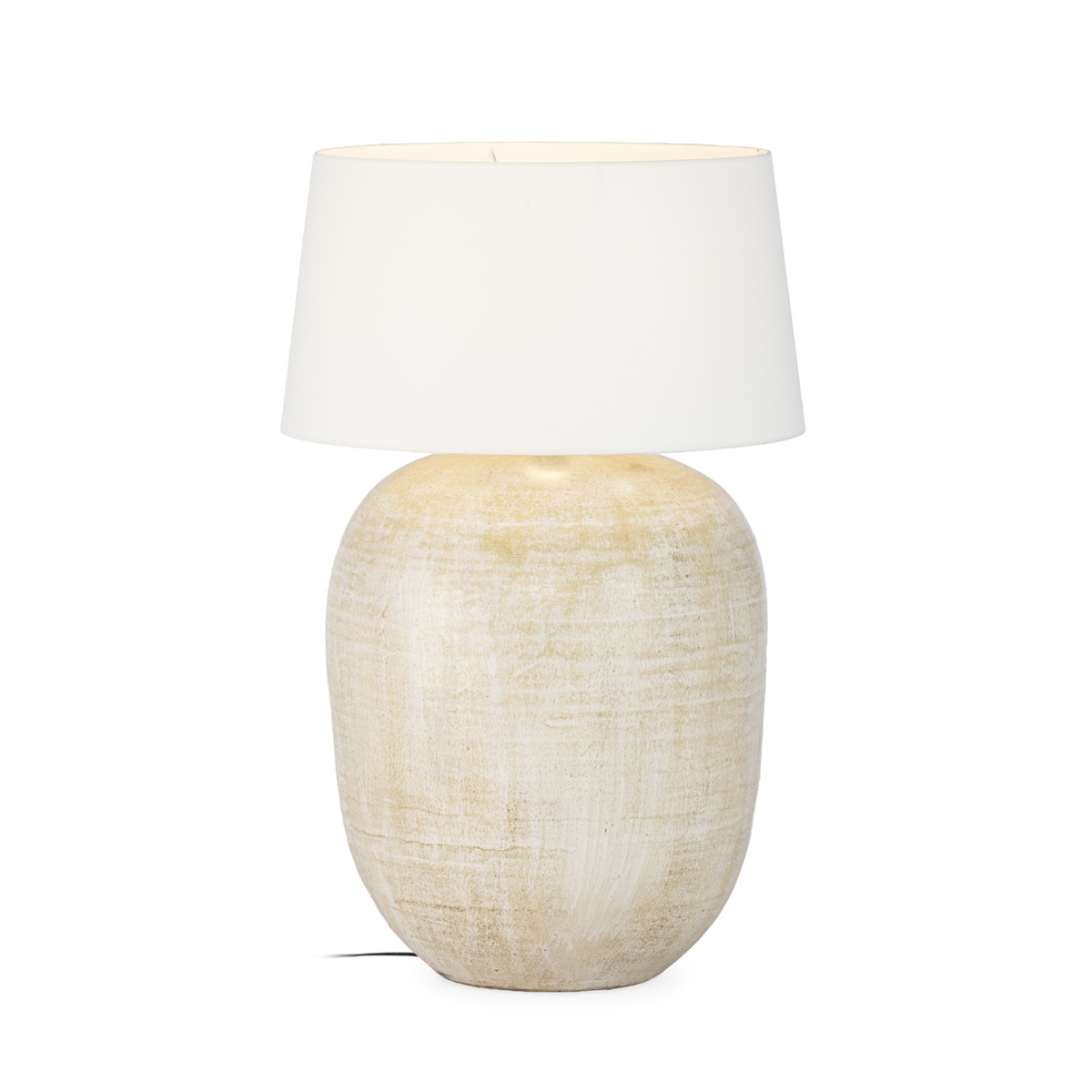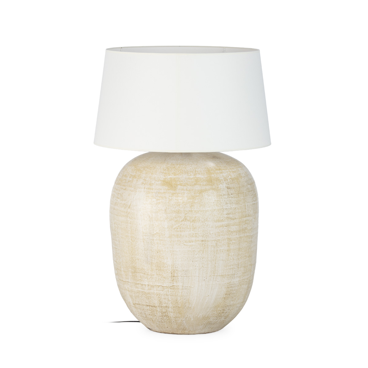 Con un delicado tono crema y acabado artesanal, esta lámpara de terracota de mesa es una pieza decorativa que aporta calidez y sofisticación a cualquier espacio. Sus dimensiones (50x50x60 cm) la convierten en una lámpara para mesa grande ideal para quienes buscan un equilibrio entre lo rústico y lo contemporáneo. Perfecta como lámpara de sobremesa para despacho, para el salón o como toque de estilo en el recibidor.