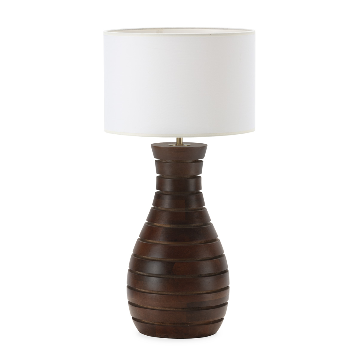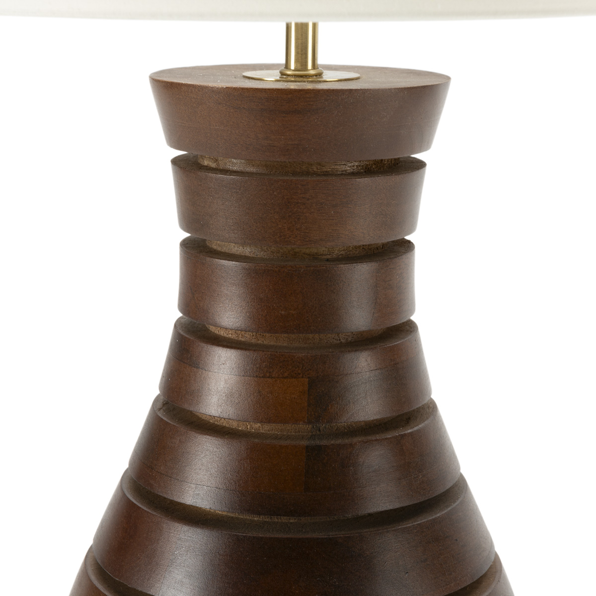 Con unas dimensiones de 18x18x48 cm, esta lámpara de mesa para el salón o el dormitorio añade un toque de lujo a cualquier espacio. La combinación del color nogal y el metal dorado crea un contraste perfecto, haciendo que esta lámpara sea una pieza diferente por su distinción en cualquier rincón de tu hogar.