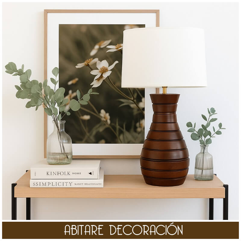 Lámpara sobremesa madera nogal metal con con un bonito diseño diseño contemporáneo, crea un ambiente relajante y confortable donde puedes descansar y recargar energías después de un largo día. Ya sea que las coloques en tu mesita de noche, en el salón junto al sofá o en tu escritorio de trabajo, esta lámpara de sobremesa te envolverán en una sensación de calma y bienestar.