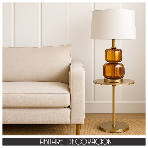 Añade un toque de sofisticación con esta lámpara de sobremesa que combina cristal ámbar con un elegante soporte de metal dorado. Perfecta para decorar salones contemporáneos, dormitorios modernos o el escritorio de trabajo. Este diseño exclusivo es ideal para quienes buscan una pieza única.