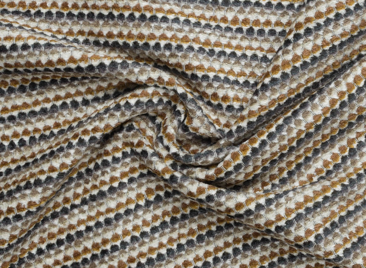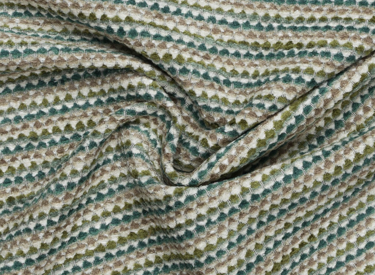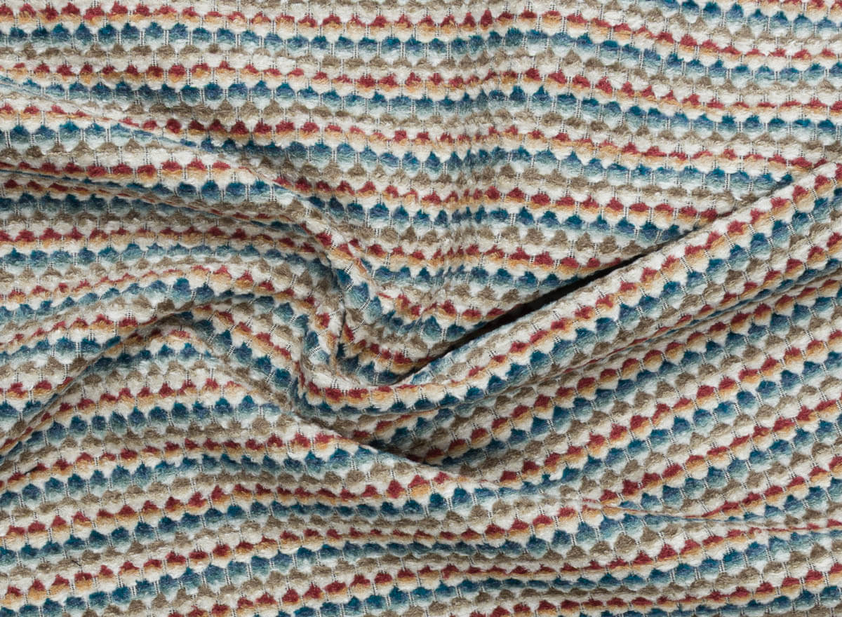 Esta tela chenilla geométrica para tapicería destaca por su equilibrio entre estética y funcionalidad. Su microdibujo de rayas multicolores crea un efecto visual sutil y sofisticado, perfecto para aportar profundidad sin saturar el espacio. Una elección ideal para interiores cuidados que buscan confort y diseño duradero.