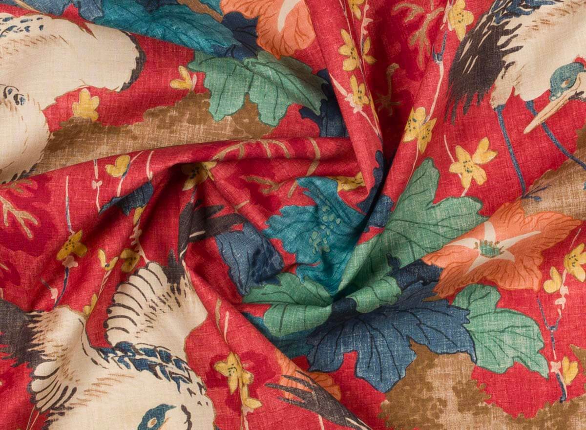 Tela estampada de flores y aves 100% algodón y estilo natural