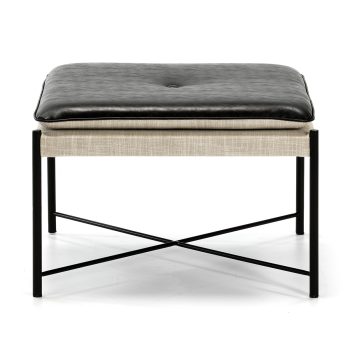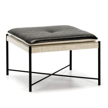 PUFF 60x60x41 METAL NEGRO-TELA GRIS-P.PIEL NEGRO